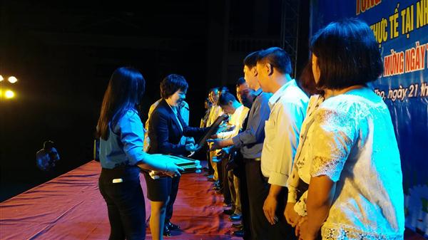 ເນື່ອງໃນໂອກາດນີ້, ທາງໂຮງຮຽນ, ສະຖານທູດລາວ ປະຈຳຫວຽດນາມ, ສະມາຄົມມິດຕະພາບຫວຽດນາມ - ລາວ ນະຄອນຮ່າໂນ້ຍ ກໍໄດ້ມອບໃບຍ້ອງຍໍໃຫ້ບັນດາຄູອາຈານ ແລະ ຄອບຄົວ ທີ່ໄດ້ເຂົ້າຮ່ວມລາຍການ ເພື່ອຮັບຮູ້ບັນດາການປະກອບສ່ວນເພີ່ມທະວີການພົວພັນຮ່ວມມືລະຫວ່າງຫວຽດນາມ - ລາວ.