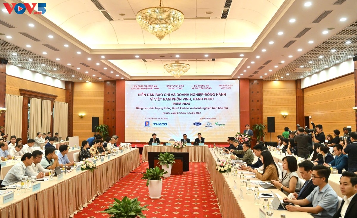 “ຍົກສູງຄຸນນະພາບຂໍ້ມູນຂ່າວສານກ່ຽວກັບເສດຖະກິດ ແລະ ວິສາຫະກິດໃນສື່ມວນຊົນ” ແມ່ນຫົວຂໍ້ຂອງເວທີປາໄສ “ສື່ມວນຊົນ ແລະ ວິສາຫະກິດຮ່ວມເດີນທາງເພື່ອປະເທດ ຫວຽດນາມ ວັດທະນາຖາວອນ, ຜາສຸກ” ຄັ້ງທີ 2, ໄດ້ດຳເນີນໃນຕອນເຊົ້າວັນທີ 24 ຕຸລາ, ຢູ່ຮ່າໂນ້ຍ. ເຫດການດັ່ງກ່າວ ໂດຍສະຫະພັນການຄ້າ ແລະ ອຸສາຫະກຳ ຫວຽດນາມ (VCCI) ສົມທົບກັບຄະນະໂຄສະນາສຶກສາສູນກາງ, ກະຊວງຖະແຫຼງຂ່າວ ແລະ ການສື່ສານ ແລະ ສະມາຄົມນັກຂ່າວ ຫວຽດນາມ ຈັດຂຶ້ນ.