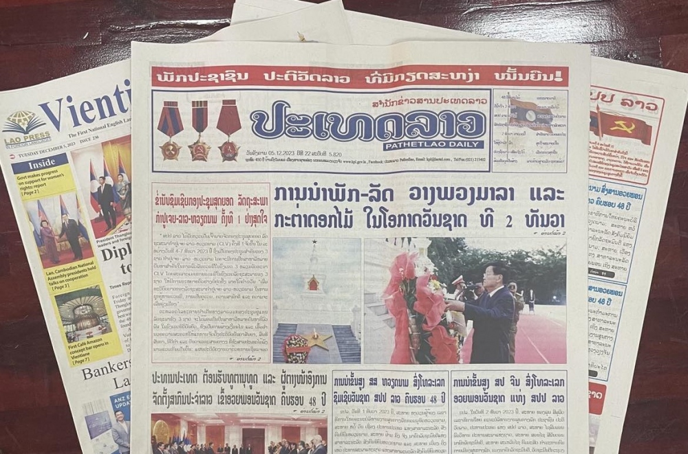ຕອນເຊົ້າວັນທີ 5 ທັນວາ, ສື່ມວນຊົນລາວ ໄດ້ໃຫ້ຂ່າວ ແລະ ບົດກ່ຽວກັບການຢ້ຽມຢາມ ແລະເຮັດວຽກຂອງທ່ານປະທານສະພາແຫ່ງຊາດ ຫວຽດນາມ ເວືອງດິ່ງເຫວະ, ຕາມຄຳເຊີນຂອງທ່ານປະທານສະພາແຫ່ງຊາດ ລາວ ໄຊສົມພອນ ພົມວິຫານ.