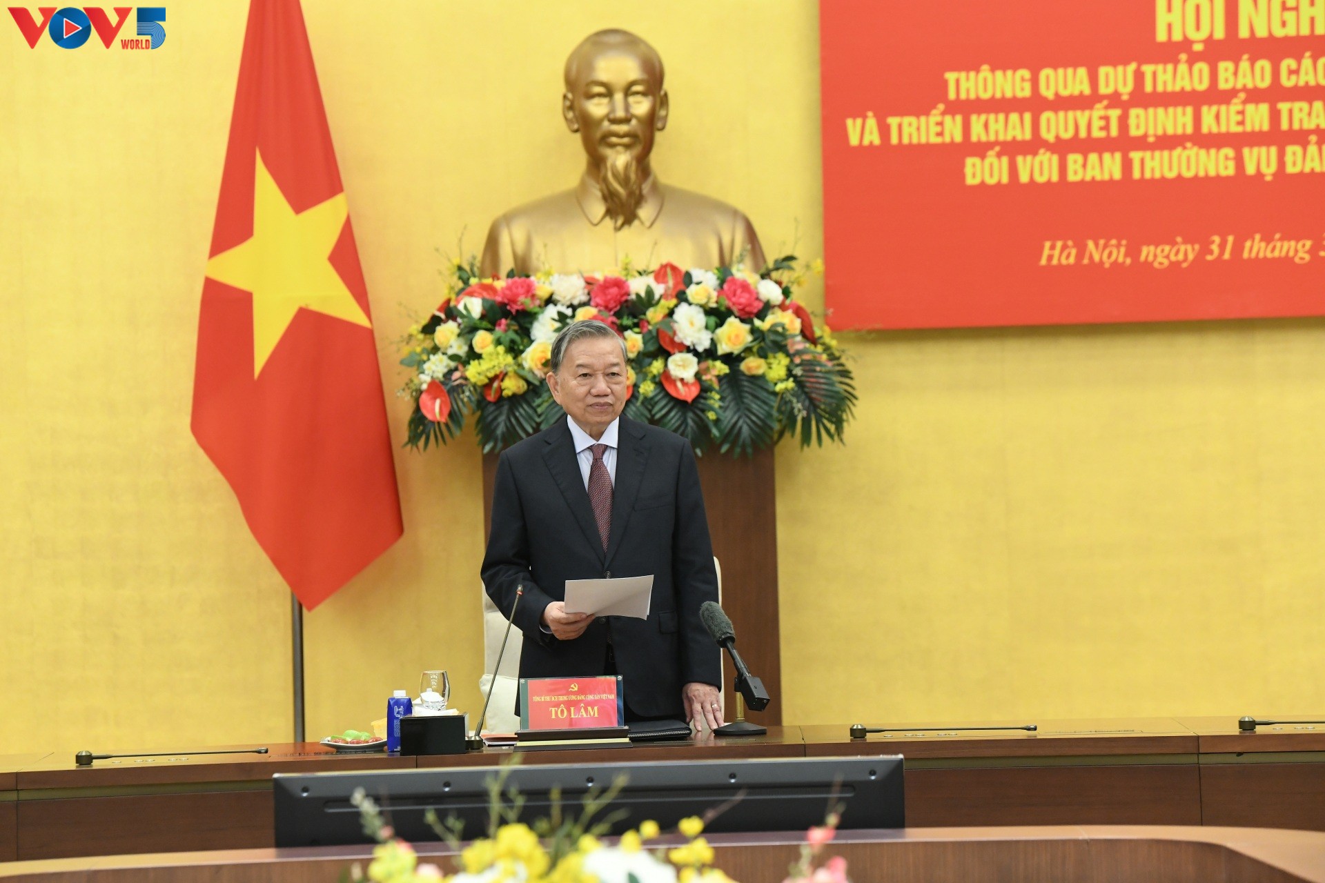 ຕອນບ່າຍວັນທີ 31 ມີນາ, ຢູ່ຫໍສະພາແຫ່ງຊາດ, ທ່ານໂຕເລິມ ເລຂາທິການໃຫຍ່, ຫົວໜ້າຄະນະກວດກາເລກ 10 ຂອງກົມການເມືອງ ໄດ້ເປັນປະທານການເຮັດວຽກຮັບຮອງເອົາຮ່າງບົດລາຍງານຕິດຕາມກວດກກາບັ້ນທີ 1 ແລະ ຜັນຂະຫຍາຍຂໍ້ຕົກລົງກວດກກາບັ້ນທີ 2 ຂອງກົມການເມືອງ ຕໍ່ຄະນະປະຈຳຄະນະພັກສະພາແຫ່ງຊາດ.