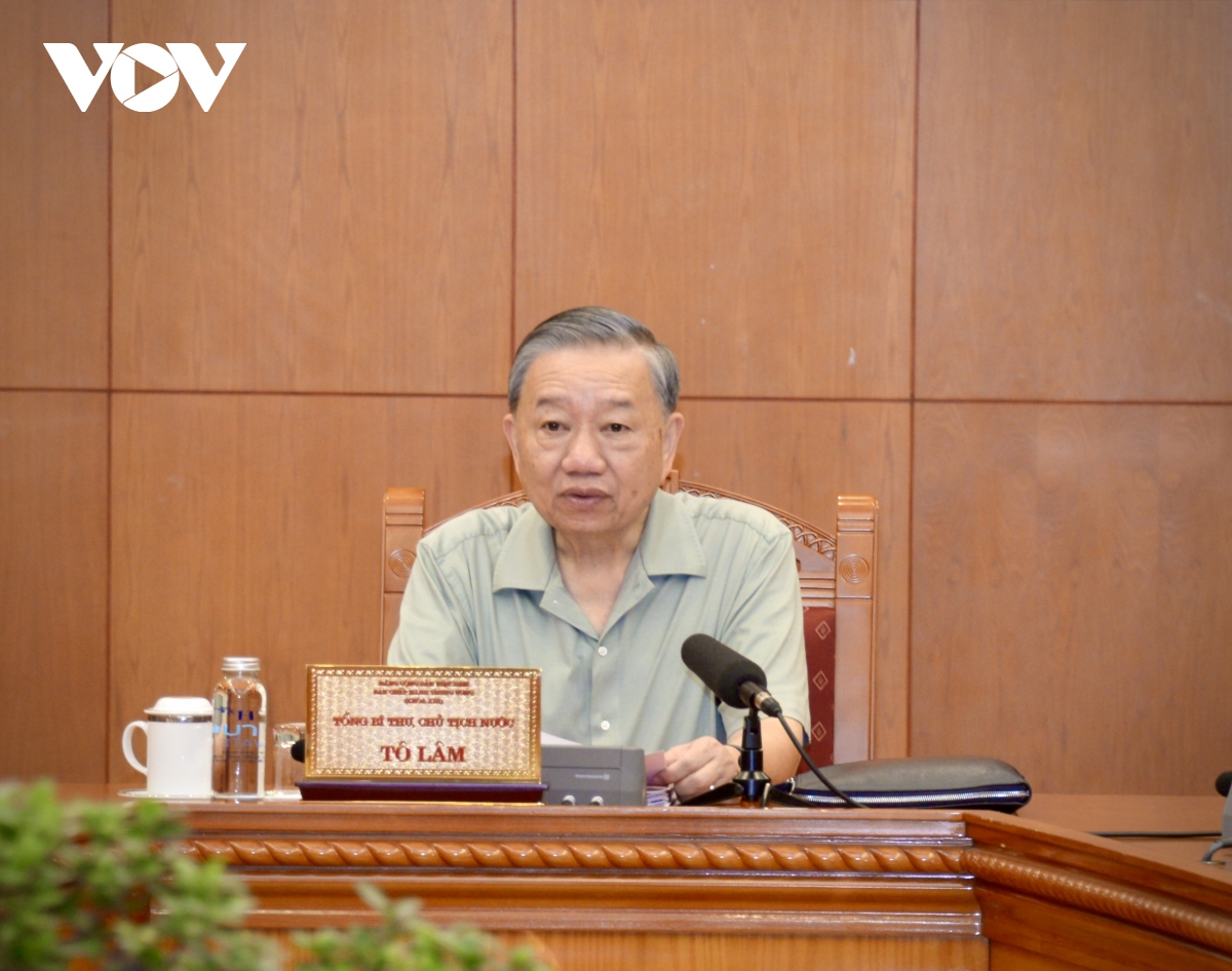 ທ່ານເລຂາທິການໃຫຍ່, ປະທານປະເທດ ຫວຽດນາມ ໂຕເລິມ ເປັນປະທານກອງປະຊຸມຄັ້ງທີ 2 ຂອງອະນຸກຳມະການ (ພາບ: VOV) |