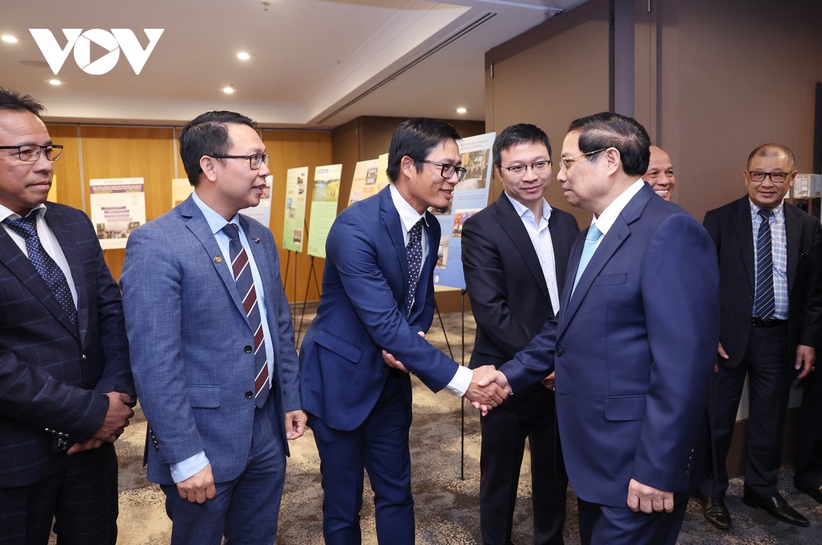 ທ່ານນາຍົກລັດຖະມົນຕີ ຫວຽດນາມ ຟ້າມມິງຈິງ ພົບປະກັບບັນດາສະມາຊິກ ສະມາຄົມນັກທຸລະກິດ ຫວຽດນາມ ປະຈຳ ອົດສະຕາລີ (ພາບ: VOV) |