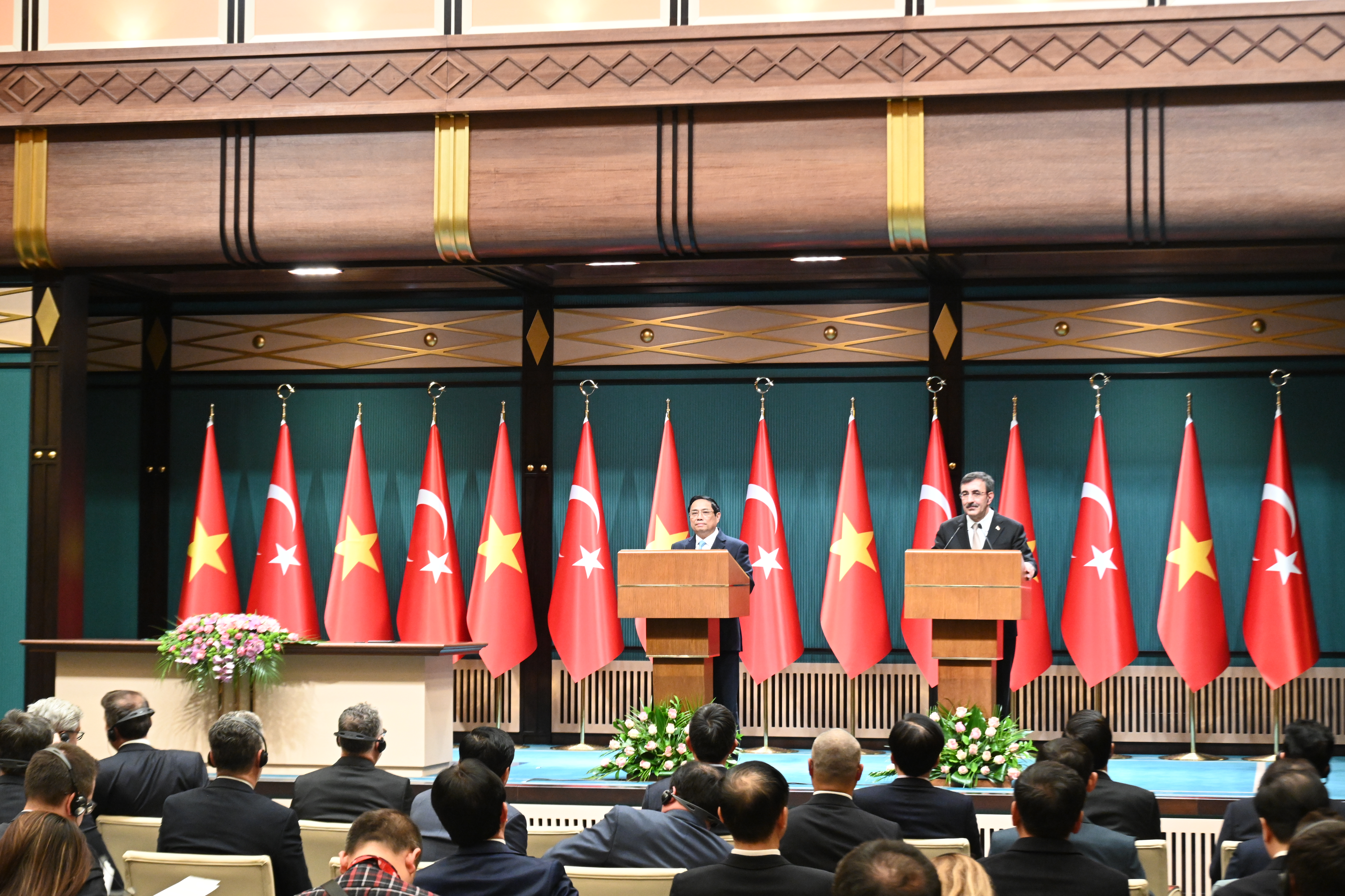 ທ່ານນາຍົກລັດຖະມົນຕີ ຟ້າມມິງຈິງ ແລະ ທ່ານຮອງປະທານາທິບໍດີ ຕວັກກີ ຖະແຫຼງຂ່າວສື່ມວນຊົນ (ພາບ: VOV) |