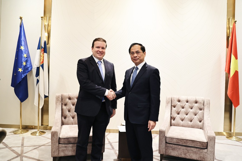 ທ່ານຮອງນາຍົກລັດຖະມົນຕີ, ລັດຖະມົນຕີກະຊວງການຕ່າງປະເທດ ບຸຍແທັງເຊີນ ໃຫ້ການຕ້ອນຮັບທ່ານ Ville Tapani Tavio ລັດຖະມົນຕີກະຊວງການຄ້າຕ່າງປະເທດ ແລະ ພັດທະນາ ແຟນລັງ (ພາບ: VGP) |