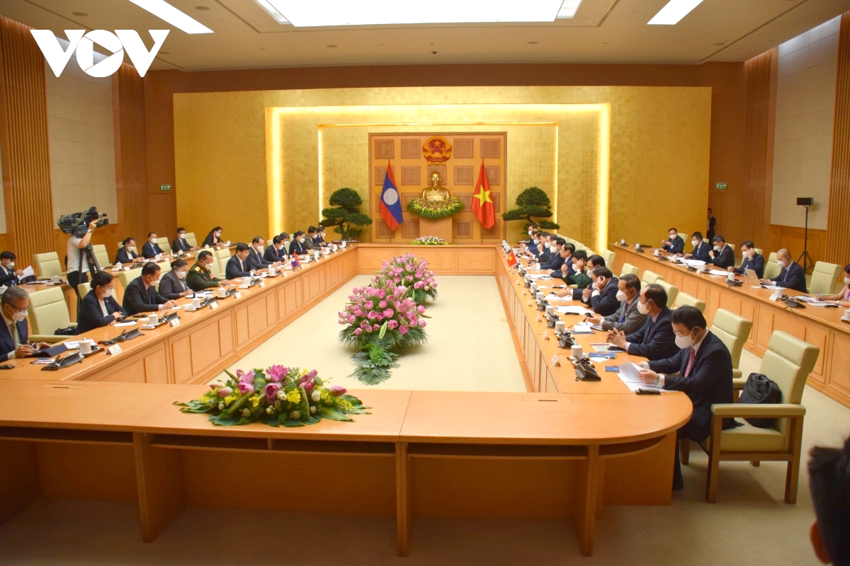 ກ່ຽວກັບໂຄງການຮ່ວມມືພັດທະນາທ່າກ່ຳປັ່ນ ວູ້ງອາງ 1,2,3, ທ່ານນາຍົກລັດຖະມົນຕີ ຟ້າມມິນຈິງ ໄດ້ຊົມເຊີຍບໍລິສັດທ່າກ່ຳປັ່ນສາກົນລາວ-ຫວຽດນາມ ທີ່ບັນລຸການເຕີບໂຕດີ, ໄດ້ນຳການຂົນສົ່ງຄອນເທັນເນີທຳອິດເຂົ້າສູ່ການເຄື່ອນໄຫວເມື່ອເດືອນ ເມສາ ຜ່ານມາ. 2 ຝ່າຍໄດ້ສົມທົບກັນຊອກຫາແຫຼ່ງທຶນ ແລະ ຍູ້ໄວການຜັນຂະຫຍາຍບັນດາໂຄງການເຊື່ອມຕໍ່ທາງຄົມມະນາຄົມຍຸດທະສາດ, ໃນນັ້ນມີເສັ້ນທາງຄວາມໄວສູງຮ່າໂນ້ຍ - ນະຄອນຫຼວງວຽງຈັນ ແລະ ເສັ້ນທາງລົດໄຟ ນະຄອນຫຼວງວຽງຈັນ - ວູ້ງອາງ. ການນຳ 2 ທ່ານໄດ້ເຫັນດີຜັນຂະຫຍາຍສວນສາທາລະນະມິດຕະພາບລາວ - ຫວຽດນາມ ຢູ່ນະຄອນຫຼວງວຽງຈັນ ໂດຍໄວ, ສົມທົບກັນຈັດຕັ້ງບັນດາການເຄື່ອນໄຫວສະເຫຼີມສະຫຼອງ 60 ປີແຫ່ງວັນສ້າງການພົວພັນທາງການທູດ ແລະ 45 ປີແຫ່ງວັນເຊັນສົນທິສັນຍາມິດຕະພາບ ແລະ ການຮ່ວມມືຫວຽດນາມ - ລາວ ໃນປີ 2022.