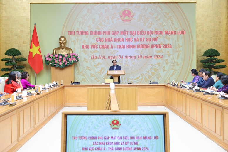 ຕອນເຊົ້າວັນທີ 04 ຕຸລາ, ຢູ່ ຮ່າໂນ້ຍ, ກ່າວຄຳເຫັນທີ່ການພົບປະກັບບັນດາຜູ້ແທນກອງປະຊຸມເຄືອຂ່າຍບັນດານັກວິທະຍາສາດ ແລະ ນັກວິສະວະກອນພາກພື້ນ ອາຊີ - ປາຊີຟິກ ແລະ ການນຳສະມາຄົມແມ່ຍິງປັນຍາຊົນ ຂຶ້ນກັບສະຫະພັນແມ່ຍິງ ຫວຽດນາມ, ທ່ານນາຍົກລັດຖະມົນຕີ ຫວຽດນາມ ຟ້າມມິງຈິງ ຢືນຢັນວ່າ, ລັດຖະບານ ຫວຽດນາມ ໄດ້ສ້າງເງື່ອນໄຂສະດວກເພື່ອໃຫ້ຖັນແຖວນັກປັນຍາຊົນ, ໃນນັ້ນມີນັກປັນຍາຊົນຍິງ, ເສີມຂະຫຍາຍກຳລັງຄວາມສາມາດ, ຄວາມສຸດຈິດສຸດໃຈຂອງຕົນຢ່າງສຸດຂີດ, ສ້າງເງື່ອນໄຂສະດວກໃຫ້ແກ່ບັນດານັກປັນຍາຊົນຍິງ, ນັກວິທະຍາສາດຍິງເຂົ້າຮ່ວມບັນດາການເຄື່ອນໄຫວ startup, ນະວັດຕະກຳ. ທ່ານນາຍົກລັດຖະມົນຕີປາດຖະໜາວ່າ, ເຄືອຂ່າຍນັກວິທະຍາສາດ ແລະ ນັກວິສະວະກອນຍິງສາກົນ ສືບຕໍ່ເອົາໃຈໃສ່, ສົມທົບກັນຢ່າງແໜ້ນແຟ້ນ, ແບ່ງປັນບົດຮຽນກັບ ຫວຽດນາມ; ໜູນຊ່ວຍຖ່າຍທອດເຕັກໂນໂລຊີ, ບຳລຸງສ້າງແຫຼ່ງຊັບພະຍາກອນມະນຸດ, ຍົກສູງກຳລັງການຄຸ້ມຄອງ, ສ້າງກົນໄກ, ລະບຽບການ, ນະໂຍບາຍ.