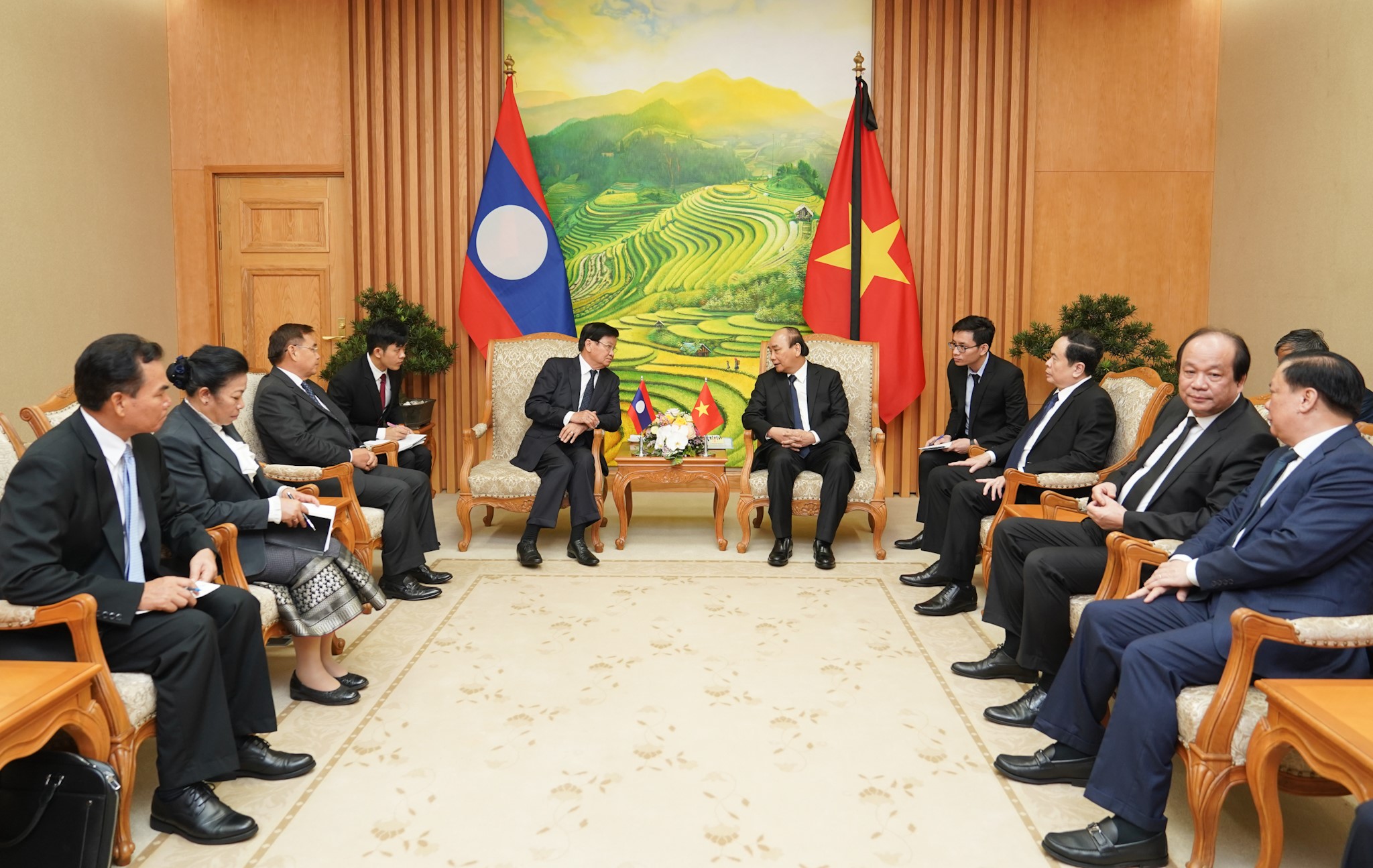 ເນື່ອງໃນໂອກາດນີ້, ນາຍົກລັດຖະມົນຕີທັງ 2 ທ່ານກໍ່ໄດ້ແລກປ່ຽນກ່ຽວກັບສະພາບການເສດຖະກິດ - ສັງຄົມຂອງແຕ່ລະປະເທດ; ກວດກາຄືນການຜັນຂະຫຍາຍຂໍ້ຕົກລົງຂອງການນຳຂັ້ນສູງ 2 ປະເທດ, ໝາກຜົນກອງປະຊຸມຄັ້ງທີ 42 ຄະນະກຳມະການລະຫວ່າງລັດຖະບານຫວຽດນາມ - ລາວ; ຊຸກຍູ້ບັນດາໂຄງການຮ່ວມມືຈຸດສຸມສຳຄັນ ແລະ ປຶກສາຫາລືບັນດາມາດຕະການຊຸກຍູ້ການພົວພັນລະຫວ່າງຫວຽດນາມ - ລາວ ໃນໄລຍະຈະມາເຖິງ ແລະ ບັນດາການກຳນົດທິດຍຸດທະສາດໃນໄລຍະ 2021 – 2025 ແລະ ຮອດປີ 2030.