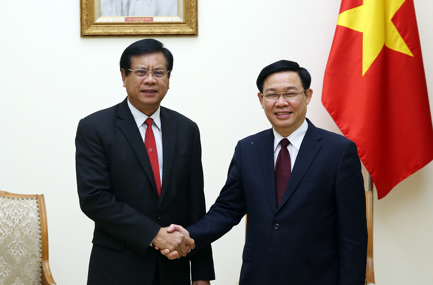 ຕອນເຊົ້າວັນທີ 19 ມີນາ, ຢູ່ສໍານັກງານລັດຖະບານ, ທ່ານຮອງນາຍົກລັດຖະມົນຕີ ຫວຽດນາມ ເວືອງດິ່ງເຫ້ວ ໄດ້ໃຫ້ການຕ້ອນຮັບຄະນະຜູ້ແທນສະຖາບັນຄົ້ນຄວ້າເສດຖະກິດແຫ່ງຊາດລາວ ໂດຍທ່ານ ບົວສອນ ບຸບຜາວັນ, ອະດີດນາຍົກລັດຖະມົນຕີແຫ່ງ ສປປ.ລາວ, ຫົວໜ້າສະຖາບັນດັ່ງກ່າວ ນໍາໜ້າຄະນະມາຢ້ຽມຢາມ ແລະ ເຮັດວຽກຢູ່ຫວຽດນາມ. ທ່ານຮອງນາຍົກລັດຖະມົນຕີຫວຽດນາມ ເວືອງດິ່ງເຫ້ວ ສະແດງຄວາມພ້ອມທີ່ຈະໃຫ້ການໜູນຊ່ວຍ, ແບ່ງປັນບົດຮຽນກັບ ລາວ ແລະ ໃຫ້ຮູ້ວ່າ ຫວຽດນາມ ບໍ່ພຽງແຕ່ແບ່ງປັນບັນດາບົດຮຽນບັນລຸຜົນສໍາເລັດເທ່ົານັ້ນ ຫາກນັບທັງບົດຮຽນປະລະໄຊໃນເມື່ອກ່ອນອີກດ້ວຍ ເພື່ອໃຫ້ສອງຝ່າຍພ້ອມກັນປຶຶກສາຫາລື, ຕີລາຄາ ແລະ ນໍາໄປປະຕິບັດຕົວຈິງ. ກ່ຽວກັບການພັດທະນາລັດວິສາຫະກິດ, ທ່ານຮອງນາຍົກລັດຖະມົນຕີ ເວືອງດິ່ງເຫ້ວ ຢັ້ງຢືນວ່າ ແຜນນະໂຍບາຍຂອງຫວຽດນາມ ແມ່ນການຊຸກຍູ້ການຫັນເປັນບໍລິສັດຫຸ້ນສ່ວນ, ຖອນທຶນ, ນໍາໃຊ້ບັນດາມາດຕະຖານ, ມາດຖານຕາມທໍານຽມຂອງຕະຫຼາດ ເພື່ອເຮັດໃຫ້ການເຄື່ອນໄຫວຂອງກຸ່ມດັ່ງກ່າວໂປ່ງໃສ ພ້ອມທັງແບ່ງແຍກບົດບາດໜ້າທີ່ຄຸ້ມຄອງແຫ່ງລັດ ກັບ ບົດບາດໜ້າທີ່ຕາງໜ້າເຈົ້າຂອງກໍາມະສິດຂອງລັດ ຢູ່ ວິສາຫະກິດ.