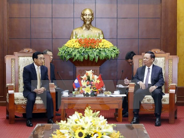 ທ່ານຮອງປະທານປະເທດ ລາວ ຄຳພັນ ວິພາວັນ ເຮັດວຽກກັບການນຳແຂວງ ຮ່ວາບີງ (ພາບ: TTXVN) |