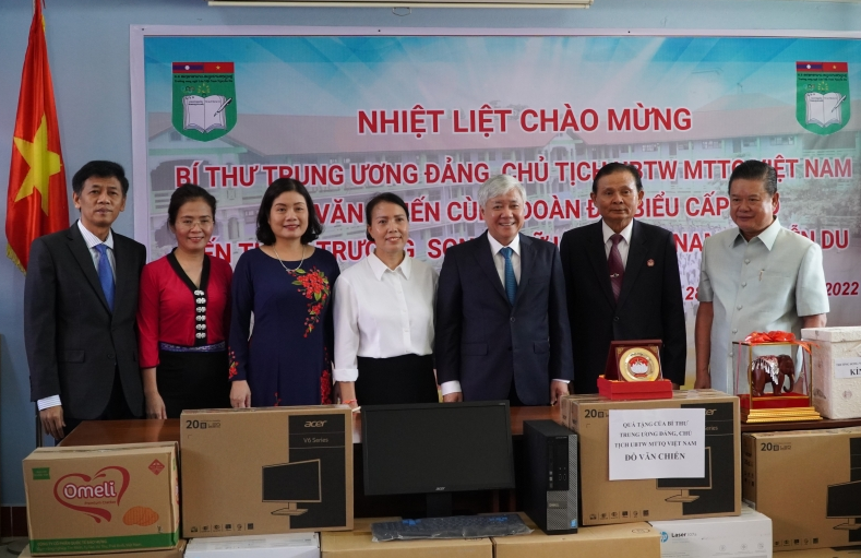 ທ່ານປະທານຄະນະກຳມະການສູນກາງແນວໂຮມປະເທດຊາດ ຫວຽດນາມ ໂດວັນຈຽນມອບເຄື່ອງຄອມພິວເຕີ ແລະ ເຄື່ອງພິມ 5 ຊຸດ ໃຫ້ໂຮງຮຽນ ສອງພາສາ ລາວ - ຫວຽດ ຫງວຽນຢູ |