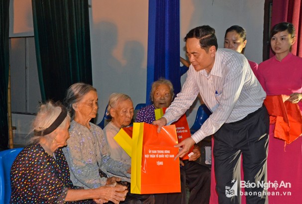 ຕອນເຊົ້າວັນທີ 6 ກໍລະກົດ, ຢູ່ເມືອງ ແອັງເຊີນ (ເງະອານ), ຄະນະປະຕິບັດງານຂອງຄະນະກຳມະການສູນກາງແນວໂຮມປະເທດຊາດ ຫວຽດນາມ ໂດຍທ່ານ ເຈິ່ນແທງເໝີນ, ປະທານຄະນະກຳມະການສູນກາງແນວໂຮມປະເທດຊາດ ຫວຽດນາມ ນຳໜ້າ, ໄດ້ໄປຢ້ຽມຢາມ ແລະ ມອບຂອງຂວັນໃຫ້ຍາດຕິພີ່ນ້ອງບັນດາຄອບຄົວນັກຮົບເສຍສະຫຼະຊີວິດເພື່ອຊາດ, ຄອບຄົວນະໂຍບາຍໃນບໍລິເວນເມືອງ ແອັງເຊີນ.