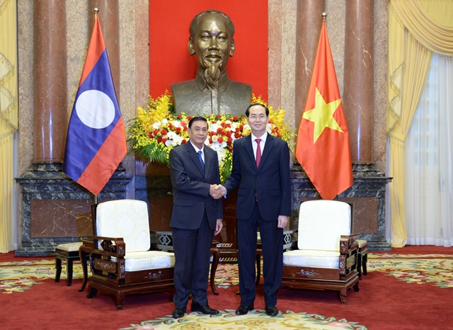 ທີ່ການຕ້ອນຮັບ, ທ່ານປະທານປະເທດ ເຈີນດ້າຍກວາງ ຢືນຢັນວ່າ: ຫວຽດນາມ ຍາມໃດກໍ່ຖືເປັນສຳຄັນ ແລະ ສະຫງວນບຸລິມະສິດສູງສຸດໃຫ້ແກ່ການປັບປຸງ ແລະ ເພີ່ມທະວີການພົວພັນມິດຕະພາບທີ່ເປັນມູນເຊື້ອ, ຄວາມສາມັກຄີແບບພິເສດ ແລະ ການຮ່ວມມືຮອບດ້ານ ຫວຽດນາມ - ລາວ. ທ່ານປະທານປະເທດ ສະເຫນີ ໃນໄລຍະຈະມາເຖິງ, ສອງຝ່າຍສືບຕໍ່ມານະພະຍາຍາມ, ສູ້ຊົນເພື່ອໃຫ້ການພົວພັນດ້ານການເມືອງສອງປະເທດເຂົ້າສູ່ລວງເລິກ, ເພີ່ມທະວີປະສິດທິຜົນການແລກປ່ຽນຄະນະຜູ້ແທນທຸກຂັ້ນ. ພ້ອມກັນນັ້ນ ສອງຝ່າຍຄວນເພີ່ມທະວີການແລກປ່ຽນບົດຮຽນລະຫວ່າງທຸກຂັ້ນ, ຂະແຫນງການ, ທ້ອງຖິ່ນສອງປະເທດດ້ວຍຫລາຍຮູບການ, ຮັບປະກັນຄຸນນະພາບ, ປະສິດທິຜົນ. ພ້ອມກັນນັ້ນ ຫວຽດນາມ ແລະ ລາວ ຊຸກຍູ້ການຜັນຂະຫຍາຍປະສິດທິຜົນຂໍ້ຕົກລົງຂັ້ນສູງທີ່ບັນລຸໄດ້, ເປັນຕົ້ນແມ່ນໝາກຜົນການພົບປະຂັ້ນສູງປະຈຳປີຂອງສອງກົມການເມືອງໃນປີ 2018 ແລະ ກອງປະຊຸມຄັ້ງທີ 40 ຄະນະກຳມະການລະຫວ່າງລັດຖະບານສອງປະເທດ. ທ່ານປະທານປະເທດສະເຫນີ ສອງຝ່າຍສືບຕໍ່ວຽກງານໂຄສະນາ, ສຶກສາໃຫ້ປະຊາຊົນສອງປະເທດ ເປັນຕົ້ນແມ່ນລຸ້ນຫນຸ່ມກ່ຽວກັບການຮັກສາ, ເສີມຂະຫຍາຍມູນເຊື້ອການພົວພັນແບບພິເສດ ຫວຽດນາມ - ລາວ.