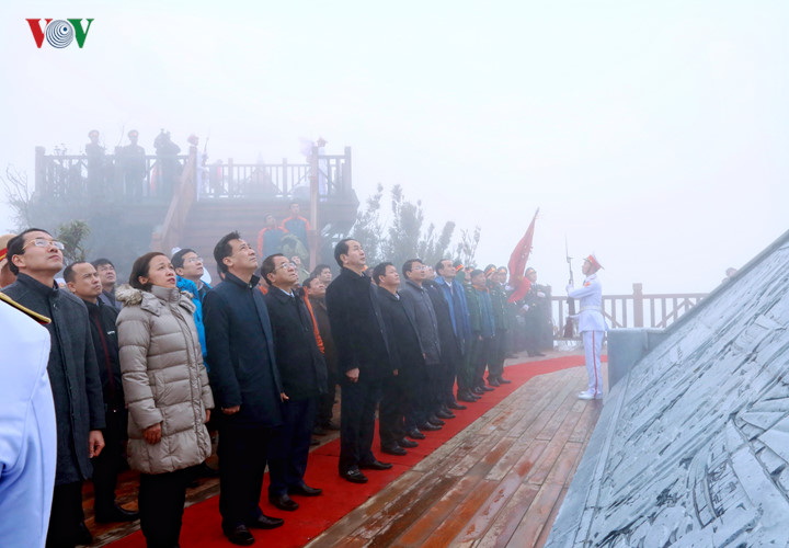 (vovworld) - ຕອນບ່າຍວັນທີ 13/01 ເນື່ອງໃນໂອກາດຢ້ຽມຢາມ ແລະ ອວຍພອນບຸນເຕັດຢູ່ບາງທ້ອງຖິ່ນຂອງແຂວງ ລາວກາຍ, ທ່ານປະທານປະເທດ ຫວຽດນາມ ເຈີ່ນດ້າຍກວາງ ພ້ອມດ້ວຍຄະນະປະຕິບັດງານໄດ້ເຂົ້າຮ່ວມພິທີຊັກທຸງເທິງຈອມພູ ຟານຊີປັງ. ພ້ອມກັບພິທີຊັກທຸງ, ທ່ານປະທານປະເທດ ເຈີ່ນດ້າຍກວາງ ຍັງເປີດສະຫຼອງເສົ້າທຸງຢ່າງເປັນທາງການຢູ່ຈອມພູ ຟານຊີປັງ. ເສົ້າທຸງມີລວງສູງ 25 ແມັດ, ໄດ້ຮັບການກໍ່ສ້າງຢູ່ລະດັບຄວາມສູງເຖິງ 3.143 ແມັດ ທຽບກັບລະດັບນ້ຳທະເລ.
