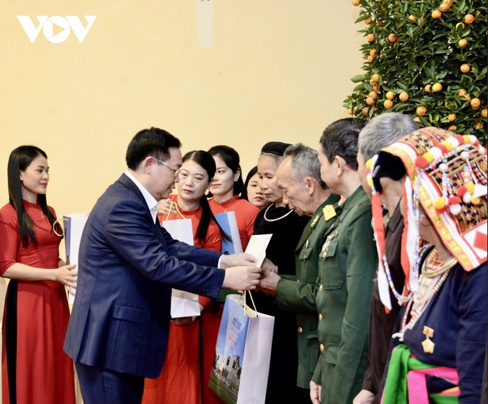 ຕອນບ່າຍວັນທີ 31 ມັງກອນ, ເນື່ອງໃນໂອກາດລະດູບານໃໝ່ປີມະໂລງ, ທ່ານປະທານສະພາແຫ່ງຊາດ ຫວຽດນາມ ເວືອງດິ່ງເຫວະ ໄດ້ໄປຢ້ຽມຢາມ, ອວຍພອນປີໃໝ່, ມອບຂອງຂວັນໃຫ້ຄອບຄົວນະໂຍບາຍ, ຜູ້ມີຄຸນງາມຄວາມດີ, ຄອບຄົວທຸກຍາກ, ຜູ້ຖືກເຄາະຮ້າຍຈາກທາດພິດສີສົ້ມ ແລະ ກຳມະກອນໃນບໍລິເວນແຂວງ ອຽນບາຍ.