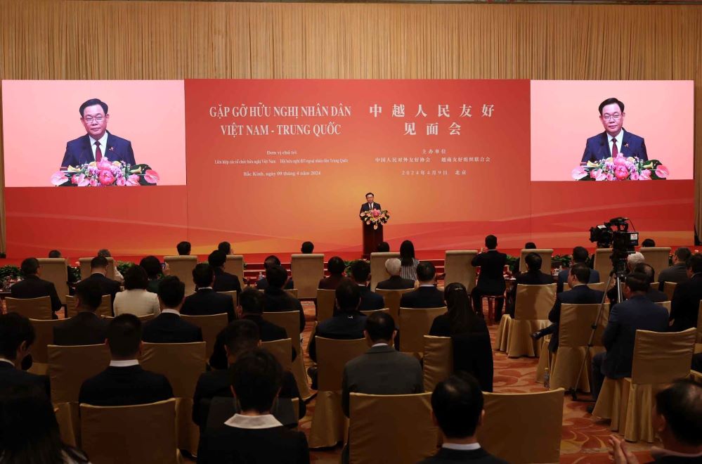 ຕອນບ່າຍວັນທີ 09 ເມສາ, ຢູ່ນະຄອນຫຼວງ ປັກກິງ, ໃນຂອບເຂດການຢ້ຽມຢາມ ຈີນ ຢ່າງເປັນທາງການ, ທ່ານປະທານສະພາແຫ່ງຊາດ ຫວຽດນາມ ເວືອງດິ່ງເຫວະ ໄດ້ເຂົ້າຮ່ວມງານພົບປະມິດຕະພາບປະຊາຊົນ ຫວຽດນາມ - ຈີນ. ກ່າວຄຳເຫັນທີ່ການພົບປະ, ທ່ານປະທານສະພາແຫ່ງຊາດ ເວືອງດິ່ງເຫວະ ໄດ້ເນັ້ນໜັກວ່າ, ໜຶ່ງໃນບັນດາທິດທາງການຮ່ວມມືພື້ນຖານ, ສຳຄັນທີ່ສຸດຂອງການພົວພັນ ຫວຽດນາມ - ຈີນ ແມ່ນປັບປຸງພື້ນຖານສັງຄົມຢ່າງໝັ້ນຄົງໜັກແໜ້ນກວ່າ.