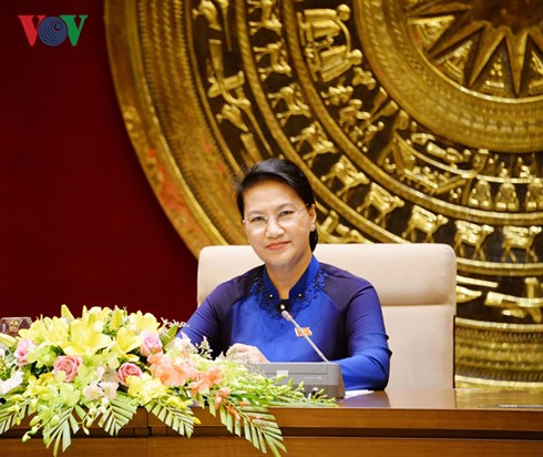 ທ່ານນາງປະທານສະພາແຫ່ງຊາດ ຫງວຽນທິກິມເງິນ ກ່າວຄໍາເຫັນທີ່ການຕ້ອນຮັບ |