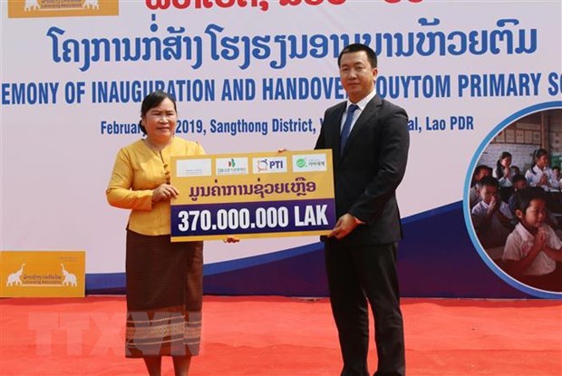 ວັນທີ 28 ກຸມພາ, ຢູ່ເມືອງ ສັງທອງ, ນະຄອນຫຼວງວຽງຈັນ, ບໍລິສັດລ້ານຊ້າງປະກັນໄພ ມະຫາຊົນ (LAP) - ເປັນບໍລິສັດຮ່ວມລະຫວ່າງ ບໍລິສັດຫຸ້ນສ່ວນ ໄປສະນີ ຫວຽດນາມ ແລະ ທະນາຄານພັດທະນາ ລາວ - ພ້ອມກັບຄູ່ຮ່ວມມືຍຸດທະສາດແມ່ນກອງທຶນວັດທະນະທຳ DB Kim Jun Ki, ໄດ້ມອບໂຄງການໂຮງຮຽນ ປະຖົມສຶກສາ ບ້ານ ຫ້ວຍຕົມ ໃຫ້ແກ່ເມືອງ ສັງທອງ. ເຂົ້າຮ່ວມພິທີມອບຮັບມີ ທ່ານ ຫວູວັນຮ່ວາ ທູດເສດຖະກິດ, ວັດທະນະທຳ ແລະສຶກສາຂອງສະຖານທູດ ຫວຽດນາມ ປະຈຳ ລາວ, ທ່ານ ໂດ໋ດັງຄາງ ຜູ້ອຳນວຍການ LAP, ທ່ານ ແກ້ວ ພົມມະລາດ ຮອງປະທານເມືອງ ສັງທອງ.