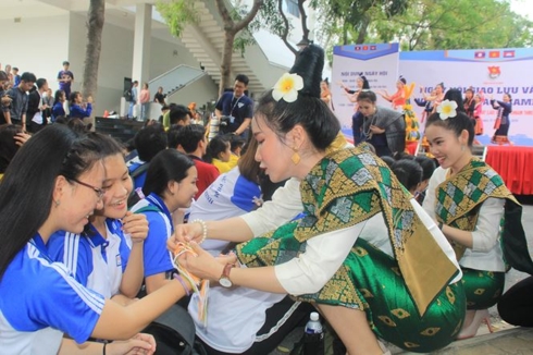 ເນື່ອງໃນໂອກາດ ບຸນປີໃໝ່ ຂອງ ລາວ ແລະ ບຸນ Chol – Chnam –Thmay ຂອງກຳປູເຈຍ, ຕອນເຊົ້າວັນທີ 31 ມີນາ ຢູ່ ມະຫາວິທະຍາໄລ ໂຕນດຶກທັ໊ງ, ຄະນະຊາວໜູ່ມນະຄອນ ໂຮ່ຈິມິນໄດ້ໄຂ ວັນບຸນພົບປະແລກປ່ຽນວັດທະນະທຳ ລະຫວ່າງ ຫວຽດນາມ - ລາວ - ກຳປູເຈຍ.