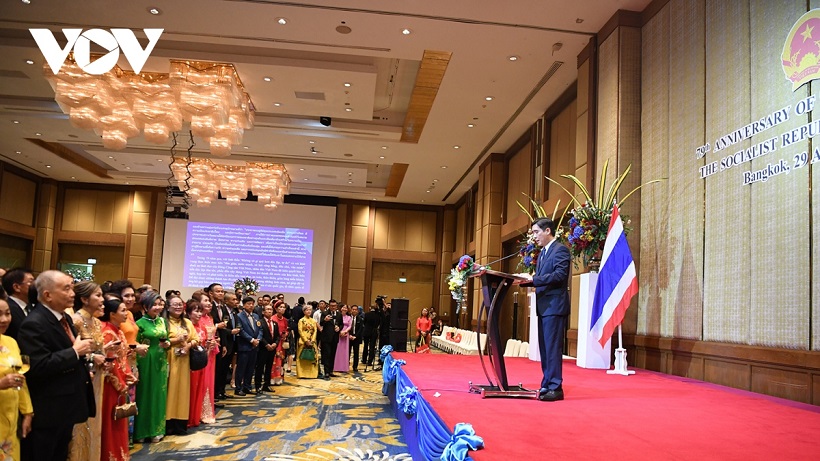 ຕອນຄ່ຳວັນທີ 29 ສິງຫາ, ຢູ່ ບາງກອກ, ສະຖານທູດ ຫວຽດນາມ ປະຈຳ ໄທ ໄດ້ຈັດພິທີສະເຫຼີມສະຫຼອງ 79 ປີແຫ່ງວັນຊາດ ສສ.ຫວຽດນາມ (02 ກັນຍາ 1945 – 02 ກັນຍາ 2024). ທີ່ພິທີ, ທ່ານເອກອັກຄະລັດຖະທູດ ຫວຽດນາມ ປະຈຳ ໄທ ຟ້າມຫວຽດຮຸ່ງ, ຢືນຢັນການເຄົາລົບນັບຖື ແລະ ຮູ້ບຸນຄຸນຕໍ່ນ້ຳໃຈ ແລະ ການໜູນຊ່ວຍ, ຊ່ວຍເຫຼືອທີ່ລ້ຳຄ່າຈາກບັນດາຄູ່ຮ່ວມມື, ເພື່ອນມິດ ແລະ ບັນດາອົງການຈັດຕັ້ງສາກົນທີ່ສະຫງວນໃຫ້ແກ່ ຫວຽດນາມ ໃນຕະຫຼອດຊຸມປີຜ່ານມາ ເພື່ອໃຫ້ ຫວຽດນາມ ສາມາດບັນລຸໄດ້ຜົນງານຄືໃນທຸກວັນນີ້. ທ່ານເອກອັກຄະລັດຖະທູດ ຟ້າມຫວຽດຮຸ່ງ ຢືນຢັນຄຳໝັ້ນສັນຍາຮ່ວມມືກັນຢ່າງແໜ້ນແຟ້ນກັບເພື່ອນຮ່ວມງານ, ຄູ່ຮ່ວມມື ແລະ ເພື່ອນມິດ ໄທ ເພື່ອປົກປ້ອງບັນດາຜົນງານລວມຂອງ 2 ຝ່າຍ, ພ້ອມທັງເປີດກວ້າງ ແລະ ເຮັດໃຫ້ສາຍພົວພັນມິດຕະພາບ, ຄວາມໄວ້ເນື້ອເຊື່ອໃຈ ແລະ ຄວາມເຂົ້າອົກເຂົ້າໃຈເຊິ່ງກັນແລະກັນ, ເພີ່ມທະວີການຮ່ວມມືຕ່າງຝ່າຍຕ່າງມີຜົນປະໂຫຍດໃຫ້ເລິກເຊິ່ງກວ່າ.