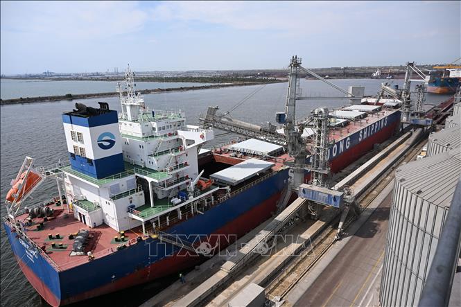 ກ່ຳປັ່ນຂົນສົ່ງທັນຍາພືດຂອງ ຢູແກຼນ ຢູ່ທ່າກ່ຳປັ່ນ Constanta, ໂຣມາເນຍ ວັນທີ 31/7/2023. (ພາບ: AFP/TTXVN) |