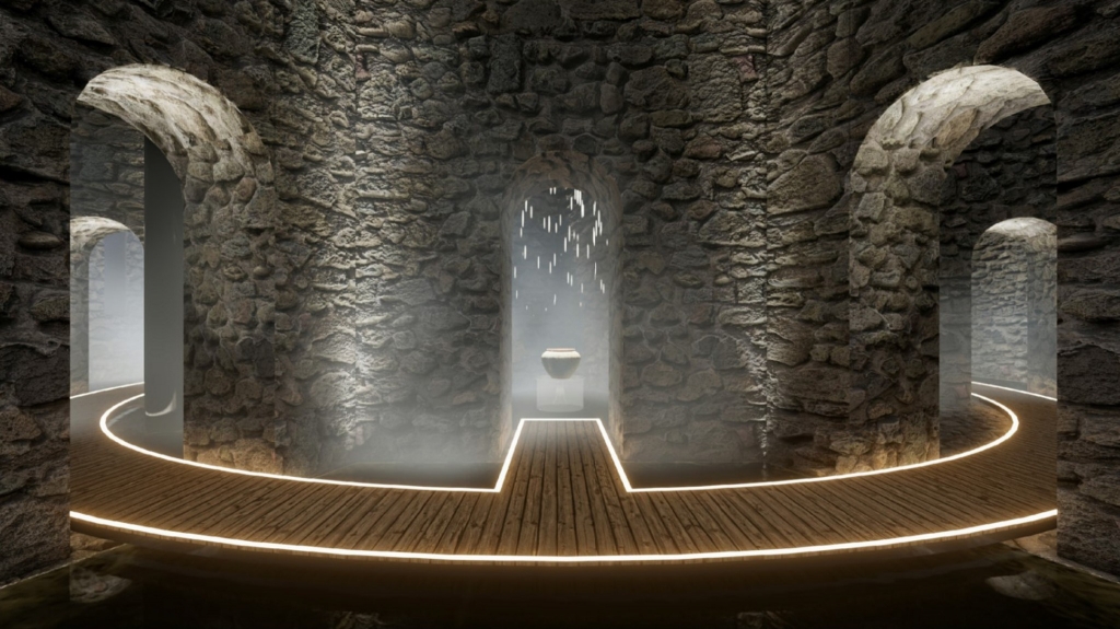 ດ້ວຍສິລະປະການຈັດວາງ, ກຸ່ມນັກອອກແບບໄດ້ຫັນຫໍນ້ຳ ຫ່າງເດົ້າ ກາຍເປັນເຂດສັກສິດດ້ວຍສຽງນ້ຳໄຫຼ, ແສງສະຫວ່າງ ແລະ ສິລະປະຈັດວາງ. ຢູ່ທາງໃນຂອງຫໍນ້ຳ ປະກອບດ້ວຍ 12 ຫ້ອງ. ໃນນັ້ນງານວາງສະແດງຈັດວາງ “ນ້ຳແລະມໍລະດົກຫໍນ້ຳ ຫ່າງເດົ້າ” ໄດ້ຮັບການປະຕິບັດຢູ່ 6 ຫ້ອງທາງນອກ. 6 ຫ້ອງເປັນສັນຍາລັກໃຫ້ແກ່ 9 ແຫຼ່ງນ້ຳໃນທຳມະຊາດລວມມີນ້ຳທະເລ, ນ້ຳຫ້ວຍ,ແມ່ນ້ຳ, ນ້ຳໃນພູ, ນ້ຳບາດານ ແລະ ນ້ຳຝົນ. ໃນແຕ່ລະຫ້ອງ ກຸ່ມນັກອອກແບບໄດ້ວາງໄຫໜຶ່ງໜ່ວຍທີ່ມີອາຍຸແຕ່ສະຕະວັດທີ XIX ແນໃສ່ປະກອບສ່ວນສ້າງເປັນລະບົບສຽງທີ່ມີຊີວິດຊີວາຂອງນ້ຳ. ຈິດຕະກອນ ຫວຽນດຶກເຟືອງ ເປີດເຜີຍວ່າ: