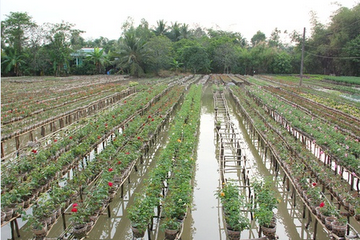 ໝູ່ບ້ານປູກດອກໄມ້ຊາແດກ, ຫ່າງຈາກເທດສະບານຊາແດກ, ແຂວງ ດົ່ງທາບ, ປະມານ 4 ກມ. ຢູ່ລຽບຕາມທາງຫຼວງ 8, ຕອນແຕ່ຕາແສງເຕິນ ກວີ໋ດົງ ເຖິງ ເຕິນແຄ໋ງດົງ ແຂວງດົ່ງທາບ ແມ່ນບັນດາທົ່ງດອກໄມ້ນາໆຊະນິດ, ດ້ວຍສີຫຼາກຫຼາຍ. ໂດຍຕ່າງກັບຮູບພາບທີ່ລິ້ງເຄີຍຂອງສວນດອກໄມ້ຕ່າງໆທີ່ປູກເປັນໜານຊື່ຖັດ. ຫາກດອກໄມ້ຢູ່ທີ່ນີ້ພັດປູກເທິງຮ້ານ, ຢູ່ໃຕ້ແມ່ນຄອງນຳ້. ດັ່ງນັ້ນບັນດາຜູ້ປູກດອກໄມ້ຕ້ອງພາຍເຮືອໄປບົວລະບັດ ແລະ ເກັບດອກໄມ້.