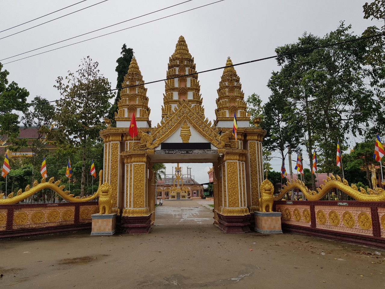 “ວັດນີ້ຖືກກໍ່ສ້າງເມື່ອປີ 1615 ມາຮອດຜັດຈຸບັນໄດ້ຜ່ານເຈົ້າອະທິການວັດ 27 ອົງແລ້ວ. ເຈົ້າອະທິການວັດອົງທຳອິດແມ່ນທ່ານກົງກ໊ອດເຊິ່ງແມ່ນນ້ອງຄີງຂອງທ່ານກົງເມີນ. ຮູບປັ້ນທ່ານກົງເມີນໝາຍເຖິງຕາມອນຜູ້ບໍລິຈາກດິນເພື່ອກໍ່ສ້າງວັດແມ່ນຢືນຢູ່ເຄິ່ງກາງຫໍບູຊາໃຫຍ່ທັງສອງຟາກກໍ່ມີລູກສິດສອງງອົງ. ຫໍບູຊາໃຫຍ່ຖືກບູລະນະປະຕິສັງຂອນແລະປຸກສ້າງເມື່ອປີ 2013 ແລະເປີດສະຫຼອງເມື່ອປີ 2023”.