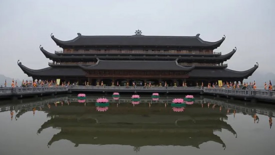 “ຫໍບູຊາທີໜຶ່ງກໍ່ມີຮູບແກະຄວັດສະຫຼັກຫີນ 12.000 ຮູບ ໂດຍບັນດານາຍຊ່າງທີ່ມີຊື່ສຽງຂອງອິນເດຍປະຕິບັດ, ຫໍບູຊາທີສອງ ແມ່ນບູຊາພະພຸດທະເຈົ້າດ້ວຍຮູບປັ້ນທີ່ມີນ້ຳໜັກ 150 ໂຕ່ນ. ສ່ວນຫໍບູຊາທີສາມ ແມ່ນຫໍບູຊາເຈົ້າແມ່ກວນອິມ ທີ່ມີຮູບຫຼໍ່ເຈົ້າແມ່ກວນອິມດ້ວຍທອງ ທີ່ມີນ້ຳໜັກກວ່າ 150 ໂຕນ”.