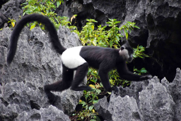 “ຕາມບັນດານັກວິທະຍາສາດຕີລາຄາວ່າ ປະຈຸບັນ ເວີນລອງແມ່ນຫນຶ່ງໃນບັນດາສະຖານທີ່ມີ ທະນີຂາຂາວ ຫລາຍກວ່າໝູ່ຢູ່ຫວຽດນາມ. ນັ່ງເທິງເຮືອ ພວກເຮົາສາມາດເຫັນໄດ້ສັດປະເພດນີ້ຢູ່ເທິງໂນນພູ. ແລະ ພູ ຮວ່າງກວຽນ ແມ່ນເຕົ້າໂຮມສັດປະເພດນີ້ຫລາຍກວ່າໝູ່. ຍາມຕອນເຊົ້າ ຫລື ຕອນແລງ ພວກເຮົາອາດຈະເຫັນຝູງທະນີຂາຂາວພວມນັ່ງກິນໝາກໄມ້ຫລືໄປໆມາໆຢູ່ເທິງຈອມພູ.”