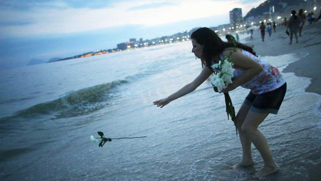 | ຊາວ ບຣາຊິວ ມີປະເພນີແກວງງ່າດອກໄມ້ຂາວລົງສູ່ຄື້ນຟອງທະເລເພື່ອໄຫ້ວອາໄລນາງເທວະທະເລ Yemanja. ແຕ່ລະປີ, ມີປະຊາຊົນນັບພັນຄົນປະຕິບັດປະເພນີນີ້ ດ້ວຍຄວາມຫວັງວ່າ ພະນາງຈະນຳຄວາມໂຊກດີມາສູ່ເຂົາເຈົ້າໃນປີໃໝ່. |