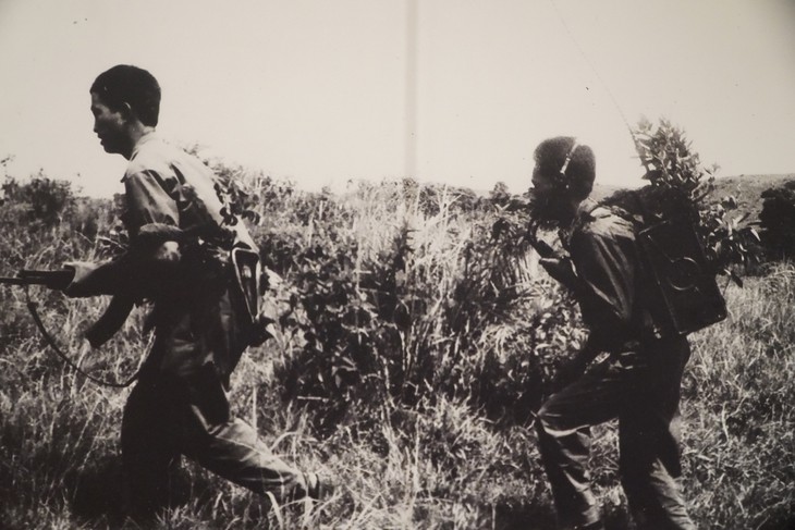 | ກຳລັງທະຫານອາສາສະໝັກ ຫວຽດາມ ສົມທົບກັບທະຫານອາສາສະໝັກກຳປູເຈຍ ປູກຈົມຕີ ຖານທີ່ໝັ້ນ X’Nun ທາງທິດຕາເວັນອອກສ່ຽງເໜືອ ກຳປູເຈຍ ເມື່ອປີ 1971. |