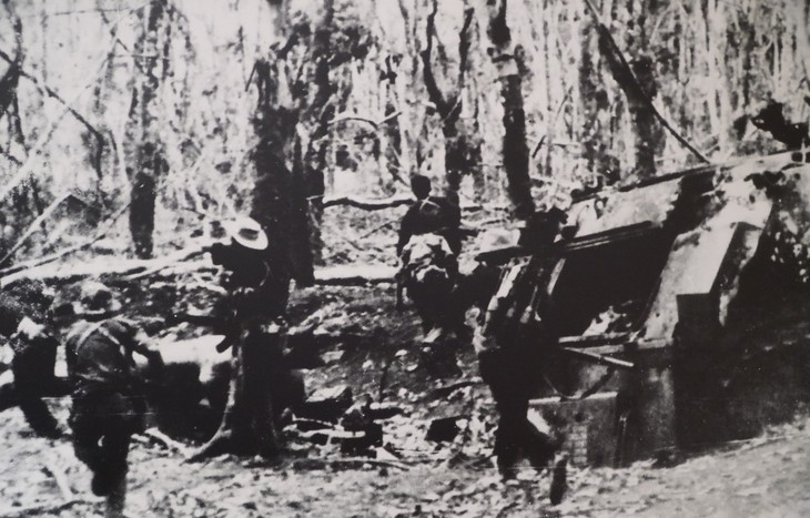 | ສຳພັນທະມິດສູ້ຮົບ ຫວຽດນາມ - ກຳປູເຈຍ ຕີປະຊາໄຊກຳລັງປ້ອງກັນດ້ວຍລົດຖັງ ແລະ ລົດຫຸ້ມເກາະຂອງພວກຮຸນກຳປູເຈຍ ຢູ່ຖານທີ່ໝັ້ນ BA Rai ແຂວງ Kampong Thom ໂດຍປະກອບສ່ວນຕີປະຊາໄຊການເຄື່ອນທັບ (ແຈນລາ 2) ຂອງພວກເຂົາ ເມື່ອປີ 1971. |