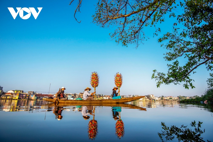 | ໃນຊຸມວັນໃກ້ຈະຮອດບຸນເຕັດ, ດອກໄມ້ຈາກໝູ່ບ້ານ ແທັງຕຽນຖືກຂົນສົ່ງ ດ້ວຍເຮືອໄປຍັງຕະຫຼາດ ບາວວິງ ເພື່ອຂາຍ. |