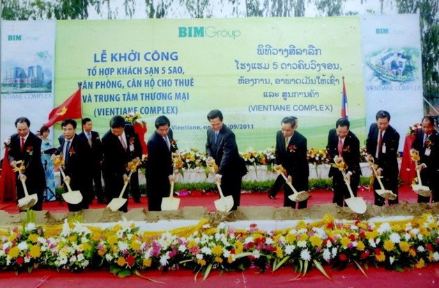 | ວັນທີ 10 ກັນຍາປີ 2011, ຢູ່ນະຄອນຫຼວງວຽງຈັນ, ທ່ານນາຍົກລັດຖະມົນຕີແຫ່ງ ສ.ສ. ຫວຽດນາມ ຫງວຽນເຕີ້ນຢຸງ ແລະ ທ່ານນາຍົກລັດຖະມົນຕີແຫ່ງ ສ.ປ.ປ.ລາວ ທອງສິງ ທຳມະວົງເຂົ້າຮ່ວມພິທີເປີດກຸ່ມໂຮງແຮມ 5 ດາວ, ອາຄານຫ້ອງການໃຫ້ເຊົ່າ ແລະ ສູນການຄ້າດ້ວຍເງິນລົງທຶນຂອງບໍລິສັດລົງທຶນ ຫ້າລອງຈຳກັດ. |