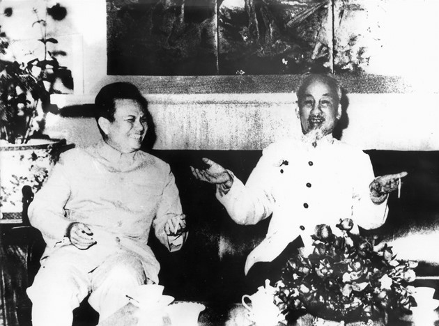 | ປະທານໂຮ່ຈິມິນ ແລະ ປະທານໄກສອນພົບວິຫານ ຢູ່ຮ່າໂນ້ຍເມື່ອວັນທີ 7 ກຸມພາປີ 1966. |