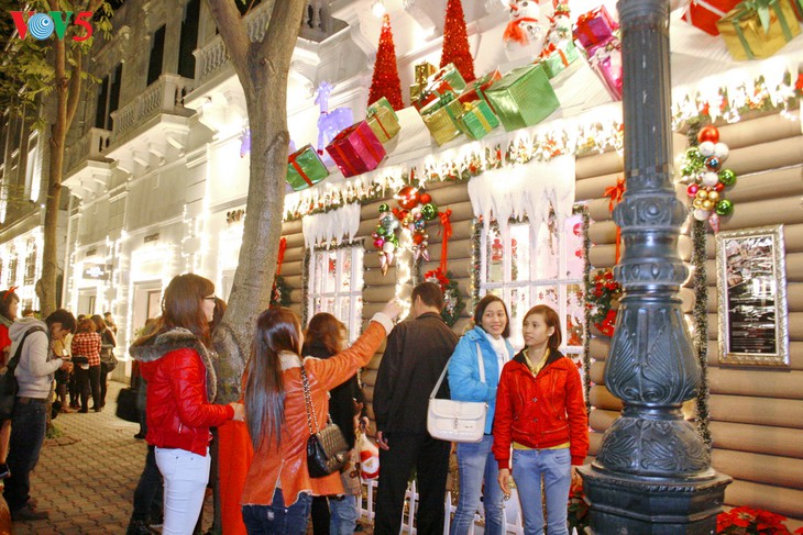 | ເມື່ອວັນບຸນຄຼິດສະມາດວຽນມາ, ຢູ່ບັນດາສູນການຄ້າໃຫຍ່ທີ່ນະຄອນຫຼວງຮ່າໂນ້ຍກໍ່ລ້ວນແຕ່ຖືກປະກັບປະດາຢ່າງສວຍງາມ ແລະ ເຕັມໄປດ້ວຍສີສັນຫຼາກຫຼາຍ, ອັນໄດ້ດຶງດູດແຂກທ່ອງທ່ຽວມາຢ່າງຫຼວງຫຼາຍ. |