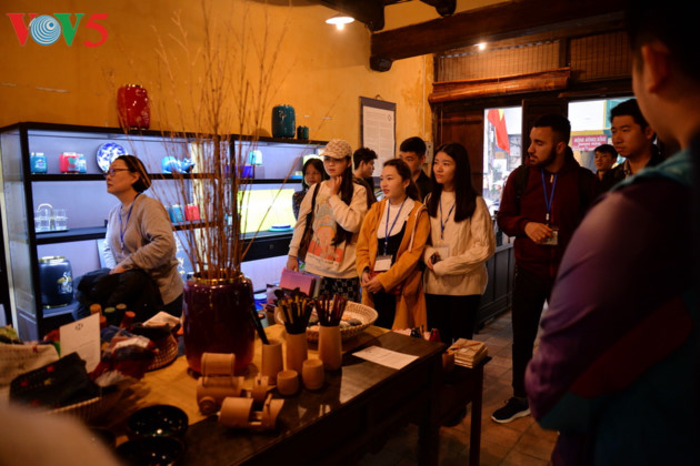 ນັກສຶກສາຕ່າງປະເທດໄດ້ຊົມບັນດາຮູບການສິລະປະທີ່ເປັນເອກະລັກສະເພາະຂອງຫວຽດນາມຄື: ຂັບເຈົາວັນ, ຂັບເສີມ, ອ່ານກາບກອນ |