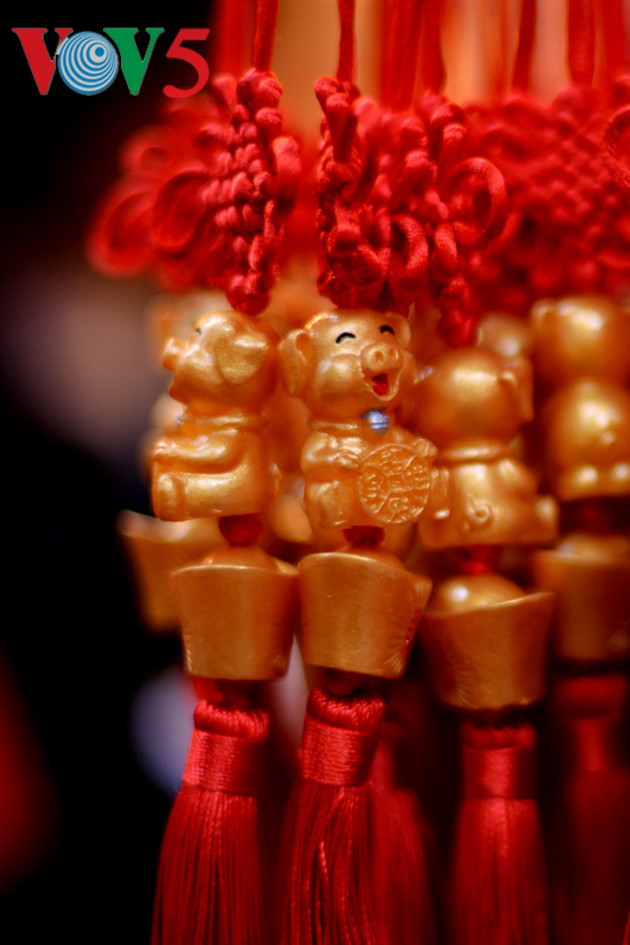 | ຢູ່ຄຸ້ມຖະໜົນເກົ່າ ຝູງໝູທີ່ເປັນສັນຍາລັກຂອງປີກຸນ ແມ່ນສິນຄ້າປະເພດໄດ້ຮັບຄວາມນິຍົມຊົມຊອບຈາກລູກຄ້າ. |