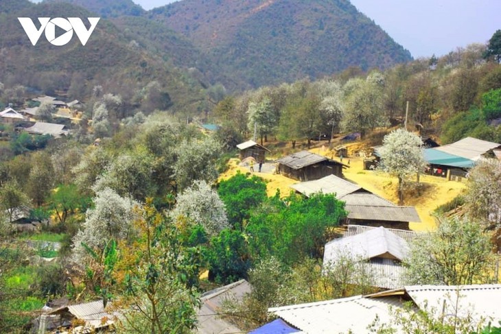 ດອກຈັນບານສະພັ່ງອ້ອມຮອບບັນດາເຮືອນທີ່ເປັນປະເພນີຂອງ ຊາວເຜົ່າມົ້ງ ອັນໄດ້ສ້າງຮູບພາບທຳມະຊາດທີ່ງົດງາມ.