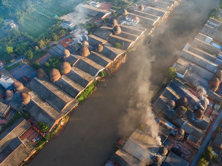 ສິ່ງທີ່ເປັນເອກະລັກໂດດເດັ່ນ ນັ້ນແມ່ນ ບັນດາຮາກຖານຜະລິດກະໂລ້ດິນເຜົາ ມາງທິດ ໄດ້ນຳໃຊ້ເຕົາເຜົາແບບດັ້ງເດີມ ນັ້ນແມ່ນເຕົາເຜົາຮູບກົມໆ ທີ່ມີຄວາມສູງ ແຕ່ 5 – 12 ແມັດ, ເປັນຮູບທາດກົມ, ອັນໄດ້ສ້າງເປັນເຂດສະຖາປັດຕະຍາກຳທີ່ເປັນເອກະລັກ ດ້ວຍບັນດາຫຼັງຄາເຕົາເຜົາທີ່ຕ່ຳ ແລະ ໂຍຂຶ້ນ. ພາບ: ແທ່ງກົງ/VOV