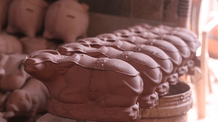 | ໜຶ່ງໃນບັນດາຜະລິດຕະພັນຂອງອາຊີບປັ້ນດິນເຜົາທີ່ເປັນມູນເຊື້ອຂອງເຂດດິນແດນ ລ໊າຍທຽວ ແມ່ນຜະລິດກະປຸກອອມສິນຮູບໂຕໝູ. ໃນຊຸມປີມໍ່ໆມານີ້, ເພື່ອແນໃສ່ຕອບສະໜອງຄວາມຕ້ອງການຂອງຜູ້ອຸປະໂພກບໍລິໂພກ, ຫຼາຍຄອບຄົວໄດ້ຜະລິດຮູບປັ້ນສັດໄປຕາມແຕ່ລະປີ. ຍ້ອນການຫັນເປັນຕົວເມືອງ, ສະນັ້ນບັນດາເຕົາເຜົາຢູ່ ລ໊າຍທຽວ ໄດ້ຍ້າຍໄປເຄື່ອນໄຫວຢູ່ເທດສະບານ ເຕິນອຽນ, ແຂວງ ບິ່ງເຢືອງ. ປີນີ້, ເຂດປັ້ນດິນເຜົາ ເຕິນອຽນ ໄດ້ຜະລິດຮູບປັ້ນ “ຄວາຍຄຳ.” |