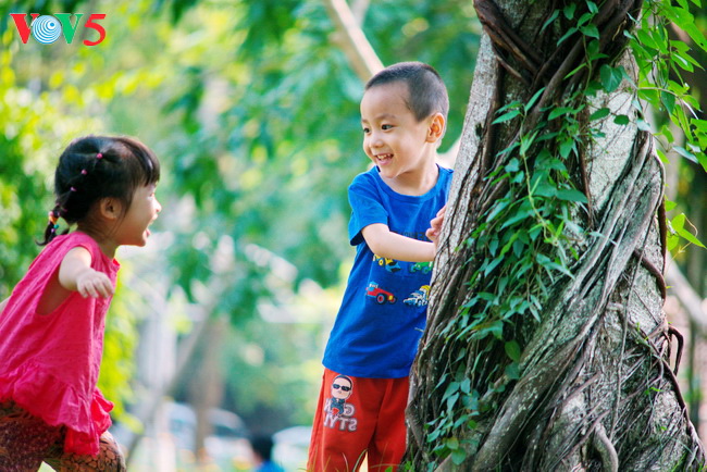 | ນ້ອງນ້ອຍ 2 ຄົນເຂົ້າຮ່ວມການເຄື່ອນໄຫວຄ້າຍພັກແລ້ງສະຫງວນໃຫ້ແກ່ເດັກຖືກຕິດ ເຊື້ອ HIV ຢູ່ ເທດສະບານ ໄຕດັງ ເມືອງ ບາວີ ຮ່າໂນ້ຍ. |
