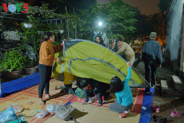 ບາງຄອບຄົວຍັງຕັ້ງຕູບເພື່ອນັ່ງລໍຖ້າເຂົ້າຕົ້ມສຸກໃນຕະຫຼອດຄືນ.