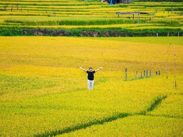 ຖ້າຫາກລະດູເຂົ້າສຸກເຫຼືອງ ຢູ່ໄຕບັກ ມີຄວາມງາມແບບໂຫຍ່ໂຕມະໂຫຖານ ແຕ່ນາຂັ້ນໄດຢູ່ ກອນຕູຣັ່ງ ພັດມີຄວາມງາມແບບລຽບງ່າຍ ແລະ ສະຫງົບ. (ພາບ: sgtiepthi.vn)
