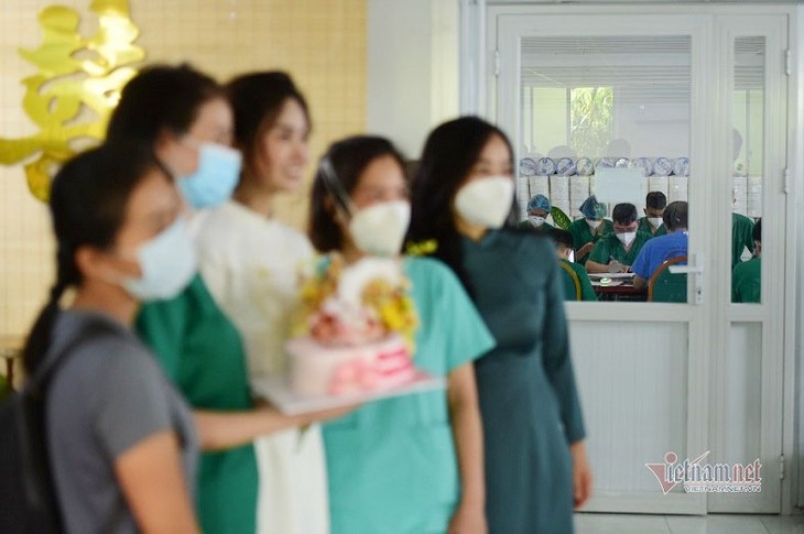 ຕອນບ່າຍວັນທີ 29 ກັນຍາ, ບັນດາແພດໝໍ ແລະ ນັກອາສາສະໝັກໄດ້ຈັດງານແຕ່ງດອງໃຫ້ເຈົ້າສາວ ໂດ້ທິງອັກຢຽບ ກັບເຈົ້າບ່າວ ເລກວາງຮຸຍ ຢູ່ໂຮງໝໍກາງສະໜາມຮັບ, ປິ່ນປົວໃຫ້ຜູ້ຕິດເຊື້ອພະຍາດໂຄວິດ-19 ຢູ່ເຮືອນເລກທີ 16 (ເມືອງ 7, ນະຄອນ ໂຮ່ຈີມິນ).