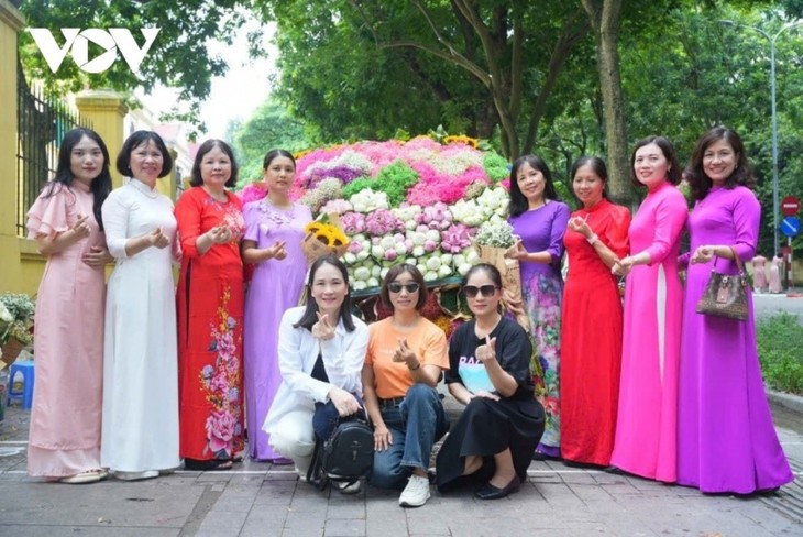 | ພ້ອມກັນນຸ່ງຊຸດເສື້ອຍາວລົງທະໜົນ, ບໍ່ພຽງແຕ່ເພື່ອບັນທຶກຈຸດຄວາມງາມນີ້ໄວ້ເທົ່ານ້ນ, ຫາກຍັງບໍ່ກອບສ່ວນຮັກສາ ແລະ ແຜ່ກະຈາຍສິ່ງທີ່ຍອດຍິ່ງ, ຄວາມງາມຂອງຊຸດເສື້ອຍາວທີ່ເປັນມູນເຊື້ອ - ມໍລະດົກວັດທະນະທຳ ຫວຽດນາມ ອີກດ້ວຍ. (ພາບ: ຫາຍບັງ/VOV) |