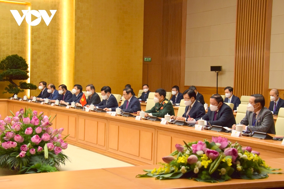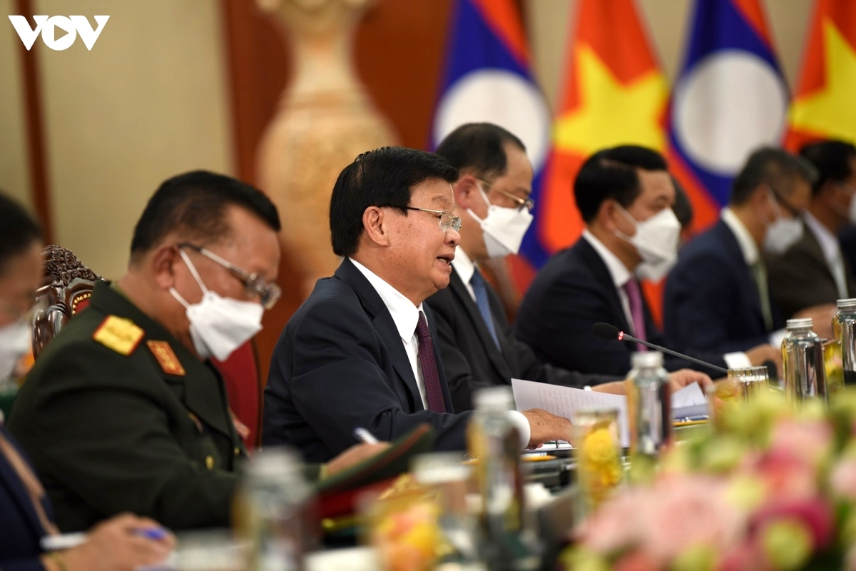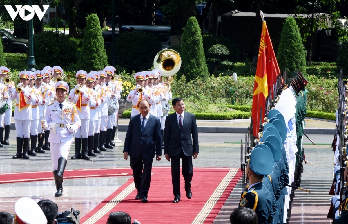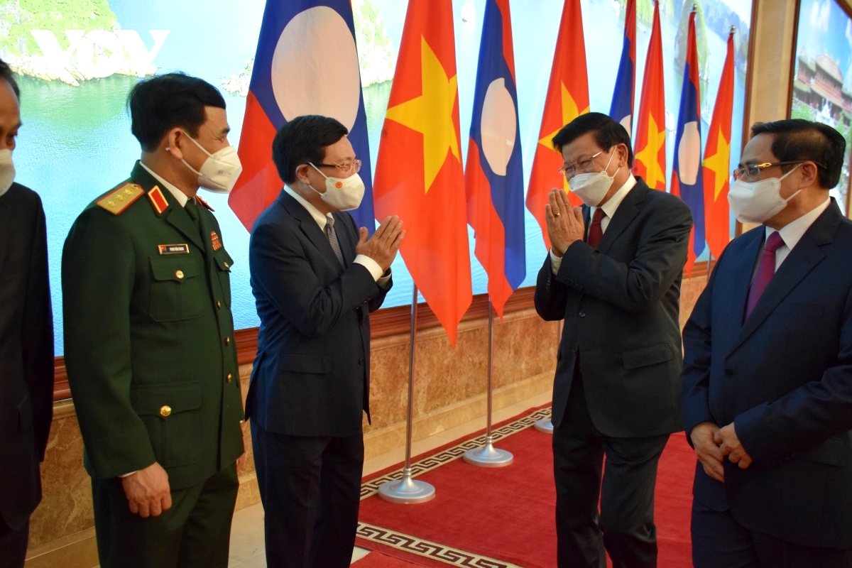 | ທ່ານນາຍົກລັດຖະມົນຕີຫວຽດນາມ ຟ້າມມິນຈິງ ແລະ ທ່ານເລຂາທິການໃຫຍ່, ປະທານປະເທດລາວ ທອງລຸນ ສີສຸລິດ. |