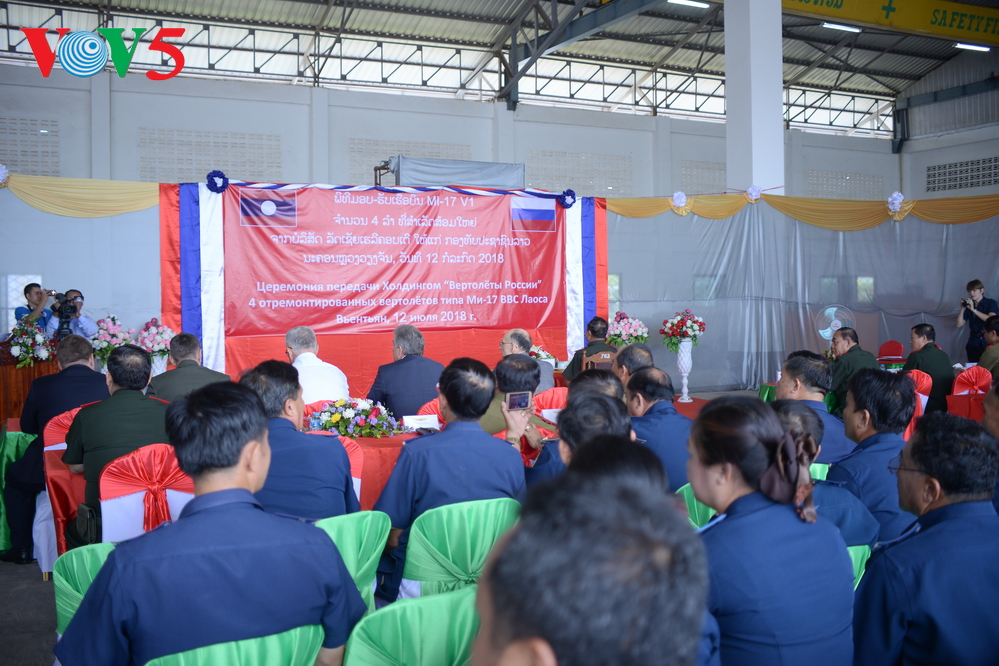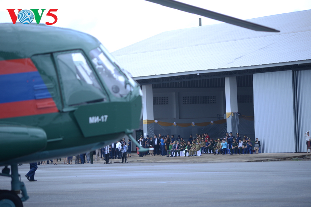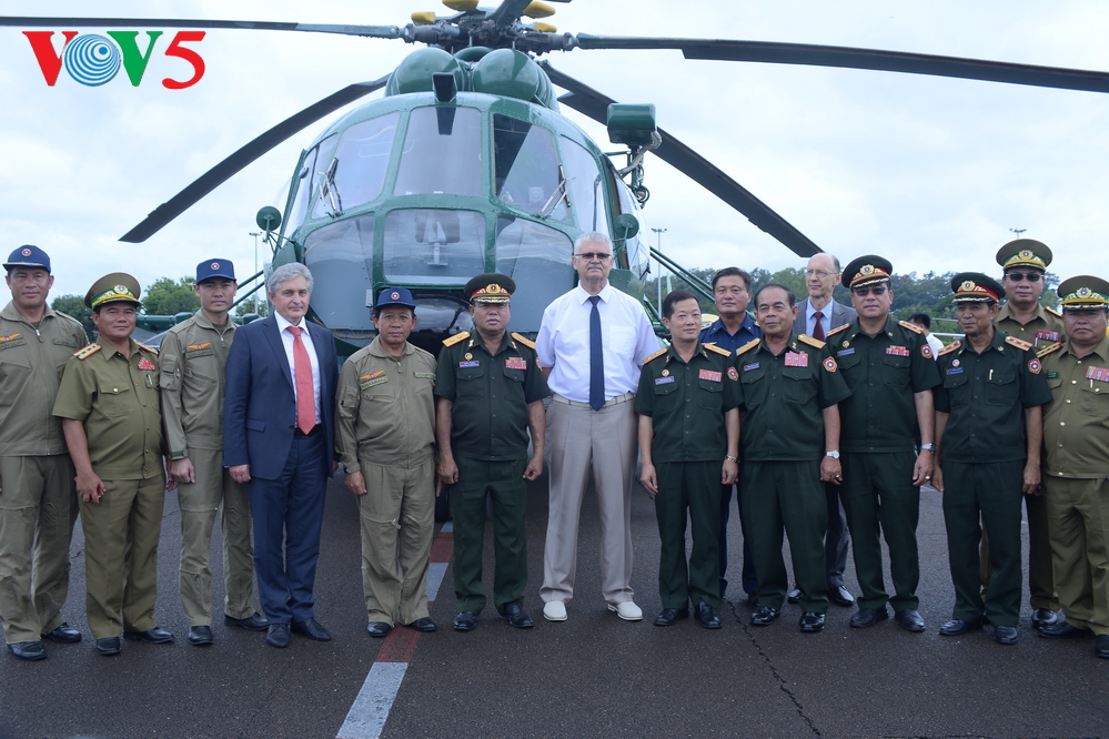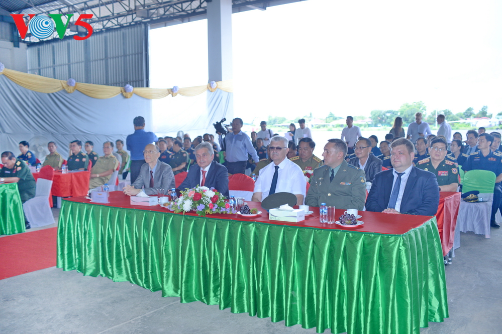 | ເຂົ້າຮ່ວມພິທີມີຜູ້ຕາງໜ້າກະຊວງປ້ອງກັນປະເທດ ສປປ ລາວ, ຜູ້ຕາງໜ້າບໍລິສັດ “Russian Helicopters”, ກຳລັງກອງທັບອາກາດ ລາວ ແລະ ນັກຂ່າວເປັນຈຳນວນຫຼວງຫຼາຍ. |