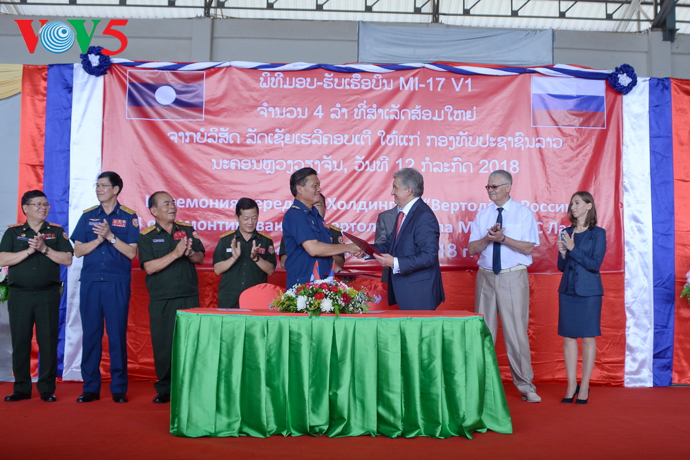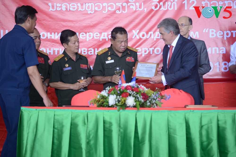 | ຜູ້ຕາງໜ້າ ບໍລິສັດ “Russian Helicopters” ໄດ້ມອບໃບຢັ້ງຢືນເຮືອບິນໃຫ້ແກ່ຝ່າຍລາວ. |