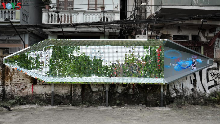 | ຜະລິດຕະພັນຂອງ ເວືອງວັນທ້າວ, ໄດ້ເຮັດຈາກປ່ຽງຈານແຕກ ເພື່ອສ້າງເປັນສາລາບ້ານ, ປະຕູໂຂງບ້ານໃນຄຸມຖະໜົນເກົ່າ ຮ່າໂນ້ຍ. |